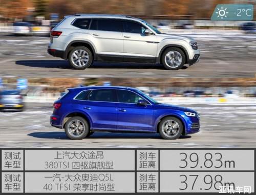 奧迪Q5L和途昂哪個好——尺寸稍小,車身較輕的奧迪Q5L剎車性能略勝一籌