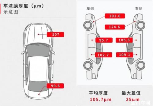 漆膜厚度方面,更厚漆膜能在遇到輕微剮蹭時(shí)更好的保護(hù)車(chē)漆,昕動(dòng)的平均漆膜厚度為105.7μm,在同級(jí)別屬于良好水平,漆膜最大差值為25μm,說(shuō)明車(chē)身比較漆膜均勻,噴涂工藝成熟。