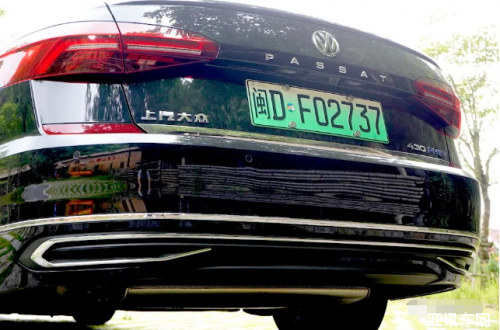 國產大眾插混車430的動力尾標僅次于6缸的輝昂,可見其定位。另外,插混車采用隱藏式排氣管,后杠上的鍍鉻裝飾是假的。