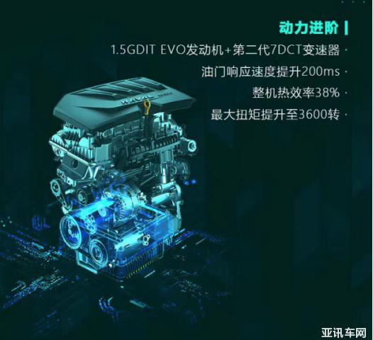 第三代哈弗H6搭載最新的1.5GDIT EVO發(fā)動機,最大功率124kW,最大扭矩285N·m。最大扭矩輸出范圍提升到1400轉-3600轉,配合3.0動力軟件版本,油門相應速度提升200ms,而且,這款發(fā)動機的NVH表現(xiàn)也非常不錯。匹配同為自主研發(fā)的第二代7DCT變速器,最大扭矩450N·m,綜合傳輸率達到95.6%,達到國際先進水平。