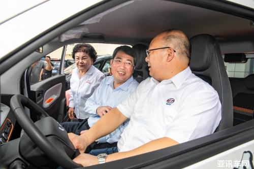 (工信部辛國斌副部長、山東省凌文副省長體驗新寶駿E300)