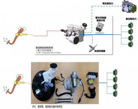 上圖為菲斯塔純電動(dòng)搭載第三代IEB系統(tǒng),下圖為AionS采用的傳統(tǒng)制動(dòng)系統(tǒng)