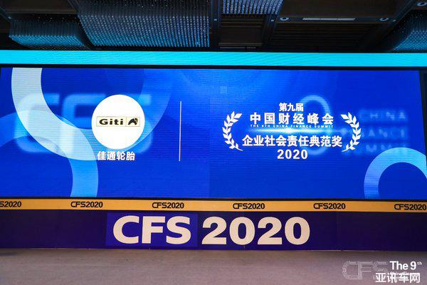 2020年8月27日-28日,以“信心與活力”為主題的第九屆中國財經(jīng)峰會于上海正式開幕。作為源自新加坡的全球化輪胎企業(yè),Giti佳通輪胎憑借自身綠色制造和全球一體化研發(fā)實力,堅持可持續(xù)發(fā)展戰(zhàn)略,長期致力于投身全球環(huán)保與公益事業(yè),踐行初心,以實力榮膺2020年中國財經(jīng)峰會“企業(yè)社會責任典范獎”。