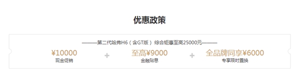 除了聰明的車機(jī)系統(tǒng)外,一輛車的性價(jià)比也至關(guān)重要,畢竟在這個(gè)人人“錢緊”的時(shí)代,性價(jià)比才是王道。目前第二代哈弗H6官方指導(dǎo)價(jià)為9.8-14.1萬(wàn)元,現(xiàn)在購(gòu)車還可享受10000元現(xiàn)金優(yōu)惠、至高9000元金融貼息、6000元專享限時(shí)置換,綜合鉅惠高達(dá)25000元的優(yōu)惠大禮包。