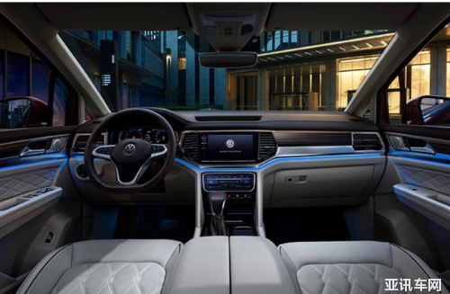 其次,威然車內(nèi)的整體風格與途昂比較相似,內(nèi)飾方面突顯了豪華的氛圍設(shè)計,采用了黑白雙色設(shè)計,同時在細節(jié)處使用了銀色飾條和棕色木紋飾板修飾,中控臺采用的是比較對稱的設(shè)計,整體被軟性材質(zhì)包裹,三輻式多功能方向盤為真皮材質(zhì),握感舒適,造型運動氣息十足,多功能按鍵布局較為合理,使用方便。在配置功能方面威然有并線輔助、疲勞駕駛提示、電動后備箱和位置記憶、10.3寸全液晶儀表盤、前排手機無線充電、CarPlay、CarLife、原廠互聯(lián)/映射、手勢操作、10色氛圍燈、丹拿音響等。