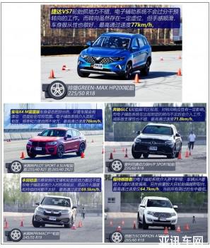 如測試編輯說說,即使捷達VS7的轉(zhuǎn)向確實存在一定虛位,但并不嚴重,良好的車身服從性加上順滑的轉(zhuǎn)向手感,致使車輛從A道駛?cè)隑道時顯得十分自然,輪胎抓地力也不錯,所以電子輔助系統(tǒng)不會過早地介入,可以允許駕駛員通過轉(zhuǎn)向?qū)嚿碜藨B(tài)進行調(diào)整,輪胎側(cè)壁有著一定的支撐性,而懸架在壓縮到一定程度后,韌性大幅提升,具有一定程度的車身姿態(tài)把控力,在進行重心轉(zhuǎn)移時也能較快速地完成,調(diào)整姿態(tài)進行下一次轉(zhuǎn)向指令,測試車的最高通過速度達到77km/h,超越了一眾高級別車型。