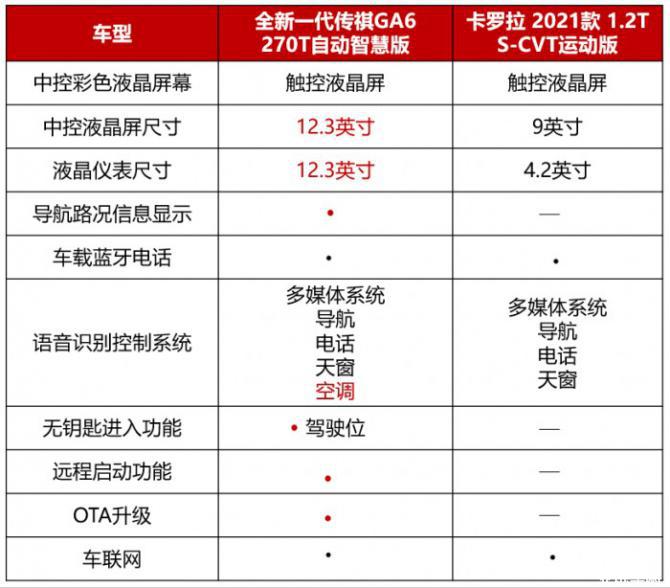 領(lǐng)先的智能科技應(yīng)用不僅可保障駕乘的安全性,還能帶來更方便、更智能、且更具樂趣的用車感受,使消費(fèi)者體驗(yàn)到一種全新的用車生活。 在這方面,全新一代傳祺GA6和卡羅拉的表現(xiàn)稱的上是可圈可點(diǎn),兩車通過融入豐富的科技元素,為用戶提供安全便捷的出行體驗(yàn)。