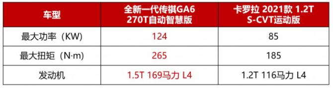 從參數(shù)對(duì)比來看,全新一代傳祺GA6的動(dòng)力性能明顯優(yōu)于卡羅拉。高效澎湃動(dòng)力輸出的背后,是270T高壓直噴高性能發(fā)動(dòng)機(jī)與愛信6AT變速箱的應(yīng)用。在 “缸內(nèi)直噴技術(shù)”、“低慣量渦輪技術(shù)”、“GCCS燃燒控制專利技術(shù)”等領(lǐng)先技術(shù)的加持下,全新一代傳祺GA6最大功率為124KW,最大扭矩高達(dá)265N?m,這樣的速度是最大功率為85KW與最大扭矩為185N?m的卡羅拉可望而不可及的。