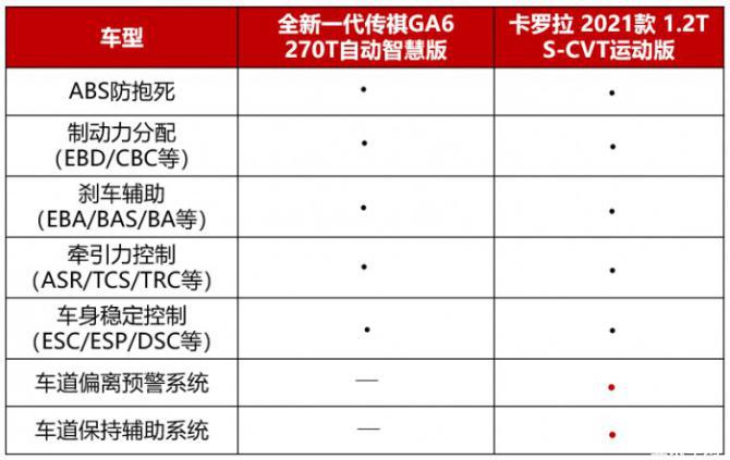 而安全方面,兩車均配備了ABS防抱死、制動(dòng)力分配、剎車輔助、牽引力控制等安全駕駛系統(tǒng),保障消費(fèi)者駕乘安全。其中,相較全新一代傳祺GA6而言,卡羅拉還多設(shè)置了車道偏離預(yù)警系統(tǒng)與車道保持輔助系統(tǒng),但對(duì)“老司機(jī)”來說,這兩項(xiàng)功能就顯得可有可無了。