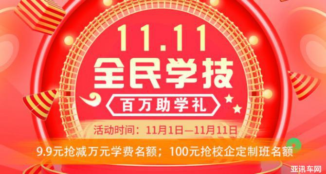 亞訊車網(wǎng)m.sbu3.com】萬(wàn)眾期待,翹首以盼!鑼鼓喧天,鞭炮齊鳴!沈陽(yáng)萬(wàn)通雙十一百萬(wàn)助學(xué)活動(dòng)終于來(lái)啦!快來(lái)看看,今年雙十一,沈陽(yáng)萬(wàn)通為想學(xué)技術(shù)的你,準(zhǔn)備了哪些驚喜好禮吧!