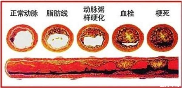 動(dòng)脈粥樣硬化主要發(fā)生在大中型動(dòng)脈,會(huì)對(duì)血管造成一定程度的堵塞,加上血栓的形成,使受阻動(dòng)脈遠(yuǎn)端缺血,導(dǎo)致局部組織壞死,如果堵住了心臟、大腦的血管,則會(huì)造成冠心病、心肌梗塞、腦梗塞等,后果嚴(yán)重。
