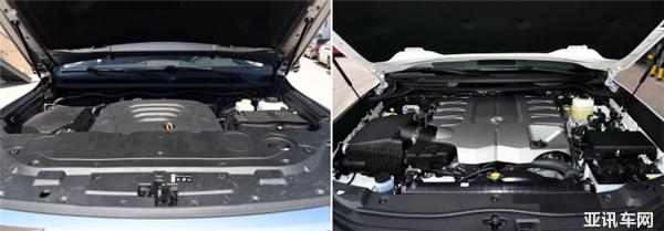 哈弗H9-2020款發(fā)動機(左側)、蘭德酷路澤發(fā)動機(右側)