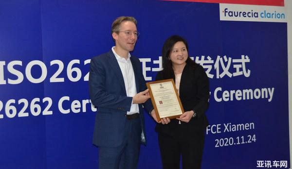 必維授予佛吉亞歌樂(lè)電子(廈門)ISO 26262:2018功能安全流程認(rèn)證證書(shū)