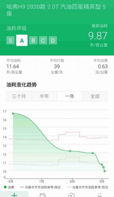 接下來我說一說大家最關(guān)心的燃油問題。一是燃油標(biāo)號(hào),升級(jí)后的哈弗H9只需要加92號(hào)汽油就可以,更適合我去偏遠(yuǎn)地區(qū)考察;二是油耗,磨合期油表顯示11.2L/100km、小熊APP計(jì)算結(jié)果是9.87L/100km;3000公里以后,滿載5人、后備箱裝200公斤東西、翻越3000米以上的達(dá)坂5個(gè),在這樣的情況下還能維持9.87L/100km讓我驚喜(有圖為證)。