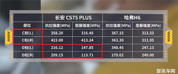 就安全配置方面來看,第三代哈弗H6圍繞“安全不分級(jí)”理念,全系標(biāo)配6安全氣囊,以及71.61%的高強(qiáng)度鋼車身。如圖所示,基于“外強(qiáng)內(nèi)軟、左高右低”的造車標(biāo)準(zhǔn),第三代哈弗H6的A柱中層、內(nèi)層均有著不錯(cuò)的拉伸與屈服強(qiáng)度,且關(guān)鍵部位像A柱外層、B柱、機(jī)艙縱梁、門框梁等,最高使用2000Mpa強(qiáng)度熱成型鋼。而C柱、D柱這些無需高強(qiáng)度剛的部位,第三代哈弗H6也是保持了“一視同仁”,沒有特別薄弱的部位。整體質(zhì)量品控、安全系數(shù)等與宣傳相符。