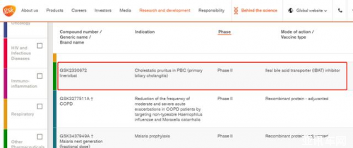 GSK研發(fā)的GSK2330672(利尼昔巴特)是一種回腸膽汁酸轉(zhuǎn)運(yùn)蛋白(IBAT)抑制劑,主要用于治療PBC引發(fā)的瘙癢癥。