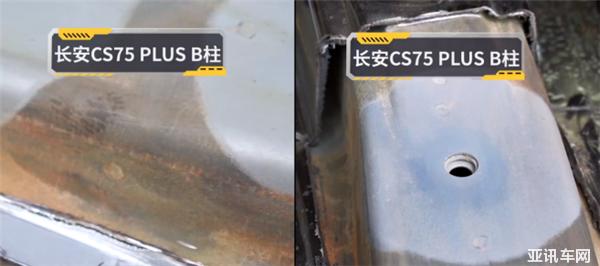 如果說,三大件我們還能測評來了解,那么車輛內部工藝如何,就需要把車拆開來看。在某拆車欄目中,長安CS75 PLUS后防撞梁僅承重91kg,這一點主要與維修經(jīng)濟性相關,影響不算很大。需要關注到的是,新車B柱內層生銹、A柱內層與中層鋼材硬度不均,這會帶來安全“隱患”。其中,B柱生銹相對嚴重,尤其是隨著天氣漸冷,車輛縫隙必然會因溫差出霜凍現(xiàn)象,一旦氣溫回暖就會加重銹蝕進程,駕駛年限越長,隱患就會加重。