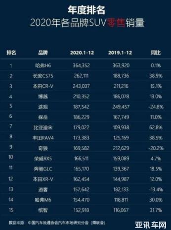 再看長(zhǎng)安CS75,雖然2020年以262,111的銷量取得了第二名的好成績(jī),但是與哈弗H6相差了10萬+銷量,而與第三名本田CR-V相比,相差不足2萬。