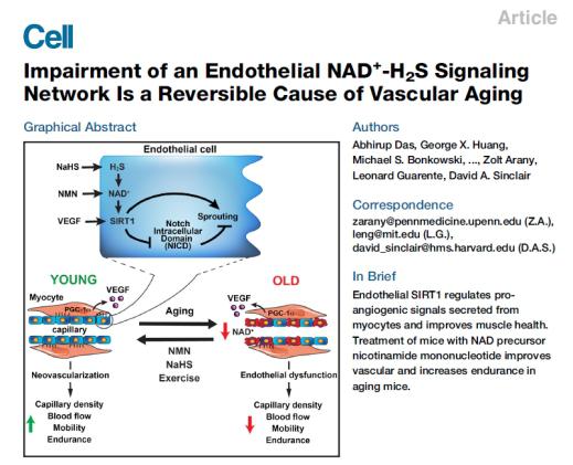 哈佛黑科技NMN是新興起的抗衰物質(zhì),作為人體重要輔酶NAD+的直接前體,口服后可快速提升體內(nèi)NAD+水平,有效激活長壽蛋白Sirtuins,修復(fù)受損DNA。2018年,NMN作用的發(fā)現(xiàn)者David Sinclair教授,在頂級學(xué)術(shù)期刊《Cell》上發(fā)表NMN逆轉(zhuǎn)血管老化的研究成果(如下圖所示)。NMN不僅對血管有益,還可幫助其他成分更好地發(fā)揮作用。