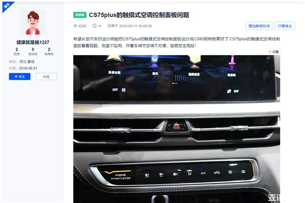 事實上,很多車型都忽略了細節(jié)上的體驗。比如同級車型長安CS75 PLUS,它為了打造車內(nèi)的科技感采用觸控按鍵,要點贊的是在我試駕的諸多車型里CS75 PLUS是唯一帶振動反饋的,可以清楚的了解是否有正常觸發(fā)。但是,面板里只有風量調(diào)節(jié),溫度和出風模式調(diào)節(jié)都需要在屏幕里完成,一個按鈕能搞定的非要反復操作,化簡為繁不可取。這部分我還是喜歡第二代哈弗H6那樣的傳統(tǒng)設(shè)計。