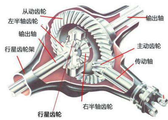 汽車在直線行駛時,四個輪子會以同樣的速度運轉。但轉彎時,由于左右兩側車輪的轉速差不同會互相干涉,導致轉彎困難甚至發(fā)生意外。這時,就需要差速器來幫忙。有了差速器,車輛轉彎時,由于左右車輪受到的阻力不一樣,行星齒輪會吸收阻力差,使兩側以不同的速度旋轉,以保證車輛順利過彎。當然,差速器也不是萬能的。當車輪轉速過快、發(fā)生打滑時,有抓地力一側的車輪會因轉速低而得不到動力,最終導致陷車。
