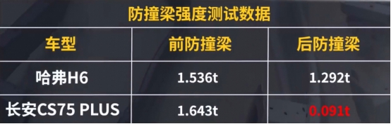 2020年國內某網站進行了哈弗H6、長安CS75 PLUS的拆車測試,其中長安CS75 PLUS后防撞梁強度僅為91公斤,而對比車型哈弗H6后防撞梁強度1.292噸(1292公斤),差距高達14.2倍!這是什么概念,長安CS75PLUS后防撞梁強度91公斤,一個成年人就可以破防,即便是在低速行駛中發(fā)生碰撞,也起不到保護的作用,形同虛設,更別提在高速行駛中了。此事一出,長安CS75 PLUS安全性能備受質疑。
