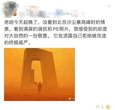 3月15日早晨,在北京的朋友表示,一覺醒來仿佛“登陸了火星”。黃沙漫天,眼前的“實景大片”,就像加了橙黃色濾鏡……