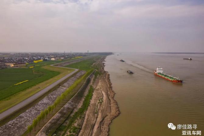 棉船島北岸長江外灘。島上的道路多建在圩堤上,頗為狹窄,加之村鎮(zhèn)密集,正好是混動(dòng)艾力紳特別能發(fā)揮節(jié)能優(yōu)勢的路段。