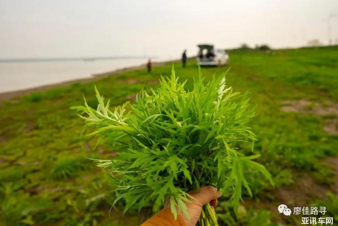 六合段外灘的這片緩堤長滿野菜,柳蒿芽和苜蓿都可食用。