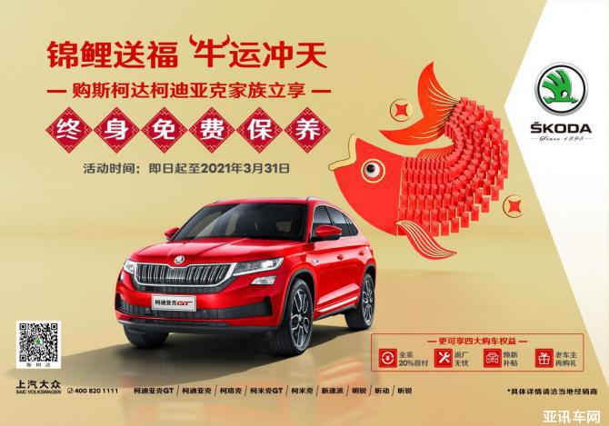 近期斯柯達還推出“錦鯉送福 牛運沖天”優(yōu)惠活動,誠意回饋廣大新老消費者。3月31日前,買斯柯達汽車就能享受終身免費保養(yǎng)、全系20%首付、煥新補貼等超值福利!