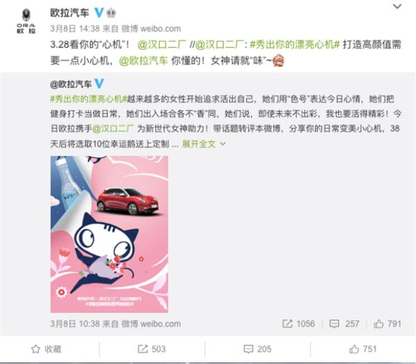 在悅己消費逐漸繁榮的當下,歐拉亦變著花樣博得女性車主們的傾心,鼓勵更多女性消費者共同參與。