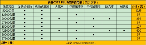 而保養(yǎng)部分如圖所示,同樣是5000公里首保,后續(xù)每7500公里保養(yǎng)一次。根據(jù)查找到的資料,3年6萬(wàn)公里行駛下來共需要1154元(價(jià)格隨地區(qū)、產(chǎn)品的不同會(huì)產(chǎn)生差異,因此僅供參考),雖然有免費(fèi)基礎(chǔ)保養(yǎng)優(yōu)惠,但人工費(fèi)和一些非基礎(chǔ)保養(yǎng)的部件還是需要自掏腰包,因此平均每月保養(yǎng)需32元。最后與油耗相加得出,每月養(yǎng)車費(fèi)用需1354.1元,處于一個(gè)相對(duì)實(shí)惠的水平。