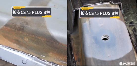 再看長安CS75 PLUS的表現(xiàn)就不盡如人意,首先車身高強(qiáng)度鋼用材重量占比僅60%,熱成型鋼在1500Mpa,對(duì)比第三代哈弗H6還是落于下風(fēng)。此外,在拆車中還有B柱內(nèi)側(cè)生銹非常明顯的問題,這意味著銹蝕會(huì)隨著車輛的使用年限愈發(fā)嚴(yán)重,這樣安全怎么得到保證?同時(shí)D柱的強(qiáng)度也不夠,一旦發(fā)生意外,安全性令人擔(dān)憂。