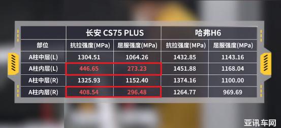 我們還對(duì)第三代哈弗H6進(jìn)行了拆解,對(duì)于細(xì)節(jié)一探究竟,基于“外強(qiáng)內(nèi)軟、左高右低”的造車標(biāo)準(zhǔn),第三代哈弗H6的A柱中層、內(nèi)層均有著不錯(cuò)的拉伸與屈服強(qiáng)度,且關(guān)鍵部位像A柱外層、B柱、機(jī)艙縱梁、門框梁等,最高使用近2000Mpa強(qiáng)度熱成型鋼。而C柱、D柱這些無需高強(qiáng)度鋼的部位,第三代哈弗H6也是保持了“一視同仁”,整體質(zhì)量與宣傳相符。
