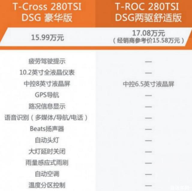 配置對比方面, 途鎧提供8英寸、6.5英寸彩色觸摸屏,此外還有大尺寸全景天窗、LED大燈、定速巡航系統(tǒng)、4探頭尾部倒車雷達以及AEB自動剎車輔助系統(tǒng)等配置。同等價位下,探歌的配置明顯落后于途鎧,大尺寸中控屏只有最高配車型才能看見,一些日常實用的配置都有缺席。