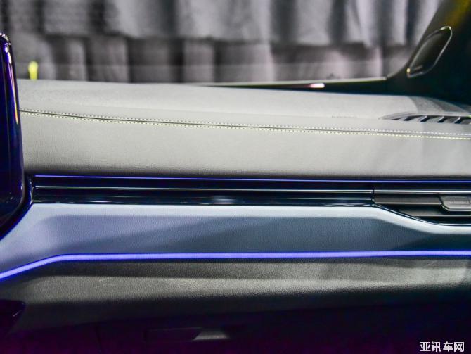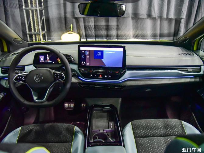 所以ID.4X采用最新光語律動設計理念,改變了我們以往認知中的套娃,比如選擇了高配車型,車身顏色就足夠充滿活力,配合前臉封閉式處理和大量柔和曲線,整車看起來十分大氣。此外還有貫穿式矩陣LED大燈點綴,車標logo可以點亮,而IQ.Light技術的應用,讓燈組內(nèi)部結構更顯別致,據(jù)說車主拿著鑰匙靠近車輛時,這些燈光會依次亮起,儀式感很強。