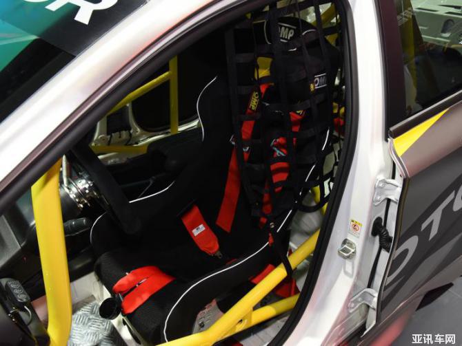 新車(chē)內(nèi)飾呼應(yīng)了外觀異常戰(zhàn)斗的氛圍,采用了完全賽事化的改造。整個(gè)內(nèi)籠中多余的配置完全被去除,裸露的白車(chē)身內(nèi)被焊上了黃色防滾架,并且賽車(chē)座椅座椅、賽車(chē)方向盤(pán)、安全帶、滅火器等都一應(yīng)俱全,中控臺(tái)上還安裝了用來(lái)監(jiān)控水溫、機(jī)油溫度等信息的三聯(lián)儀表。