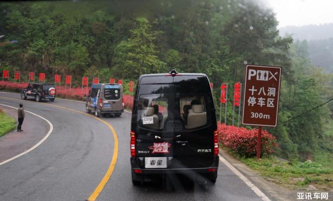 從319國道湘西花垣段南行約半小時(shí),“沿著高速看中國”車隊(duì)駛?cè)胍粭l10米寬的彩色公路。這條路通往十八洞村——一個(gè)人均耕地0.83畝,位于偏僻山谷中的苗族聚居村。村里有18個(gè)溶洞,洞洞相連,景色秀美。