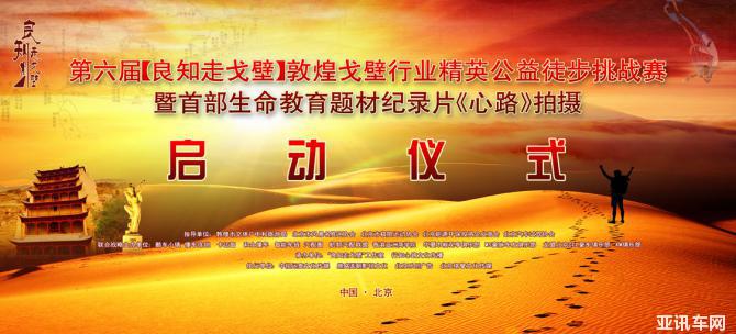 2021年4月25日,著名文旅品牌“良知走戈壁”宣布第六屆敦煌戈壁行業(yè)精英公益徒步挑戰(zhàn)賽在北京酷車小鎮(zhèn)正式啟動(dòng),首部生命教育題材紀(jì)錄片《心路》將隨隊(duì)實(shí)景拍攝。