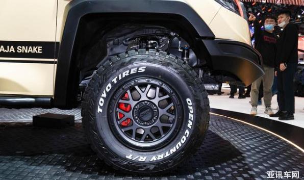 當(dāng)來(lái)到車尾,就可以看到在貨箱龍門架的部分,車廂延伸而出的龍門架裝飾板拉長(zhǎng)了整車線條,讓皮卡瞬間變得無(wú)比狂野,整車也彌漫著十足的攻擊性。目光下移,龍彈還搭載了TOYO RT越野輪胎,提高路面的通過(guò)性與穿越性能,濕地驅(qū)動(dòng)性能和制動(dòng)性能也很出色,同時(shí)對(duì)耐外傷性與耐磨性也有進(jìn)一步的提升。