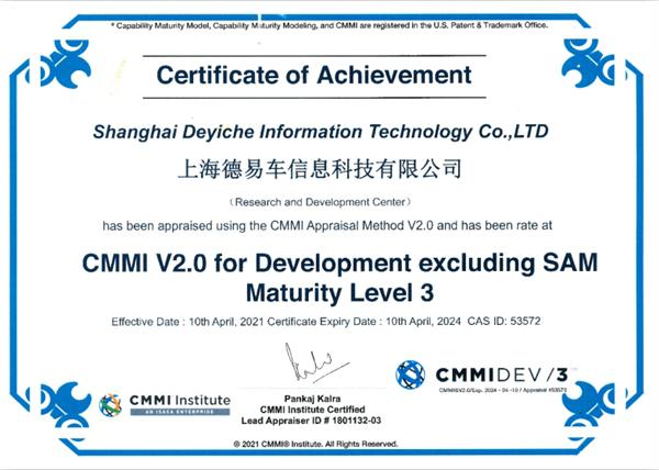 近日,經(jīng)過CMMI權(quán)威認證團隊全面、嚴格、專業(yè)的審核和評估,德易科技(全稱“上海德易車信息科技有限公司”)順利通過CMMI3 2.0認證。這標志著公司在軟件研發(fā)能力、服務(wù)交付以及項目管理水平得到國際權(quán)威機構(gòu)認可,軟件綜合開發(fā)和項目管理能力已達到國際標準。