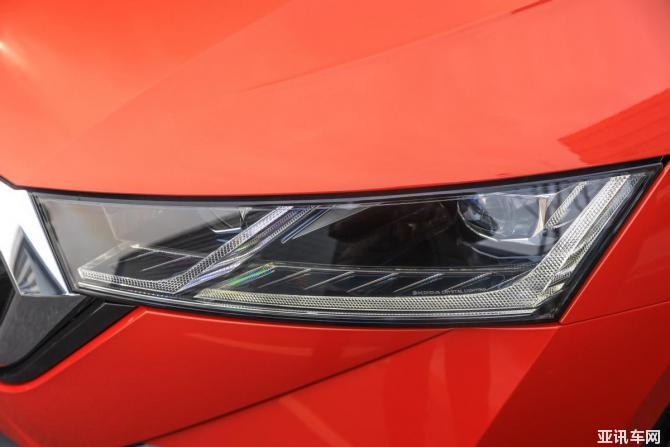 從前臉來看,依舊采用的是斯柯達(dá)經(jīng)典的直瀑式格柵。格柵上采用了很多平直的線條把輪廓勾勒得十分有力量,而且鍍鉻飾條的加入讓前臉看上去更為精致。兩側(cè)大燈造型十分狹長和格柵連接在一起,進(jìn)一步拓寬了前臉的視覺寬度,看上去更加大氣。3D流晶LED大燈采用了雙L型設(shè)計(jì),點(diǎn)亮之后十分有科幻感,視覺效果很出眾。不管是轉(zhuǎn)彎還是倒車,視野盲區(qū)都能被照亮。