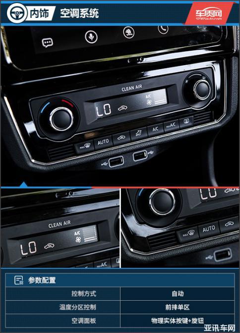 空調(diào)系統(tǒng)比較常規(guī),采用了物理實體按鍵+旋鈕的操作方式,簡單直觀,便于操作。同時,空調(diào)系統(tǒng)還配備了空氣凈化功能以及前擋風快速除霧功能,很實用。