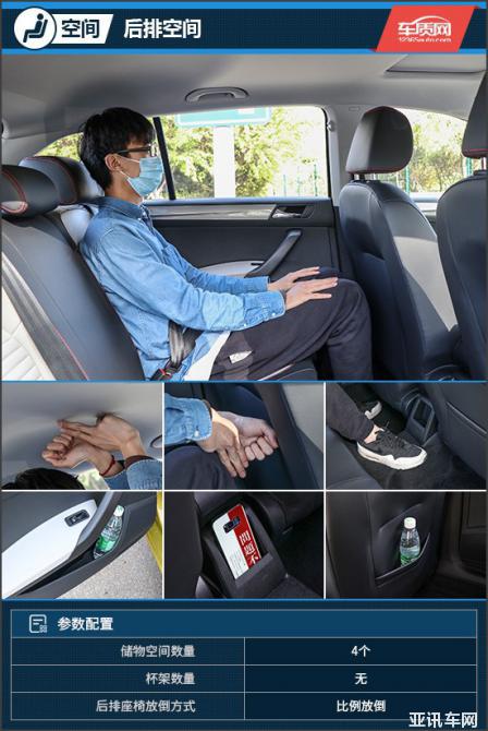 保持前排座椅位置不變,體驗者來到第二排,坐好后頭部空間同樣為一拳兩指,腿部空間一拳三指,與同級別車型相比空間余量充足。不過后排中間較高的地臺凸起,侵占了中間乘客的腳部空間,比較影響舒適性體驗。儲物空間方面,后排的儲物槽數(shù)量不多,除了后車門儲物槽外,在前排中央扶手后方還配備了一個儲物槽,但深度一般,不適于放置手機。此外前排座椅背袋只有副駕駛一側(cè)提供,能夠放置如文件夾等較薄的物品。