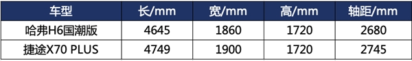 從尺寸上看,哈弗H6國潮版數(shù)據(jù)上相對保守,足足比捷途X70 PLUS小了一圈。因此,捷途X70 PLUS的車內(nèi)駕乘空間上相對要更從容一些。
