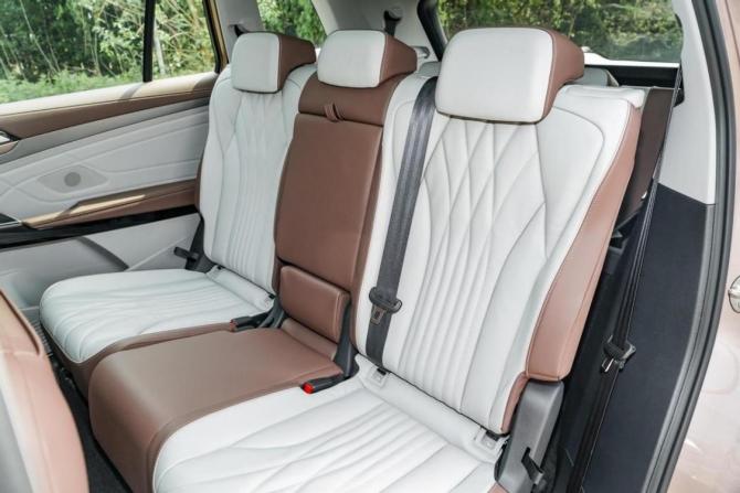 再就是實(shí)用性,ID.6X的尺寸表現(xiàn)也很不錯(cuò),作為一款中大型SUV,它的長(zhǎng)寬高分別為4876*1848*1680mm,軸距達(dá)到了2965mm,這個(gè)水準(zhǔn)還是很容易滿足第三排座椅的空間需求,而且車身尺寸不會(huì)影響到在城市中的靈活性。并且從實(shí)際體驗(yàn)中可以得知,ID.6 X的座椅舒適性本身就很不錯(cuò),哪怕是第三排座椅也填充足夠厚實(shí)。