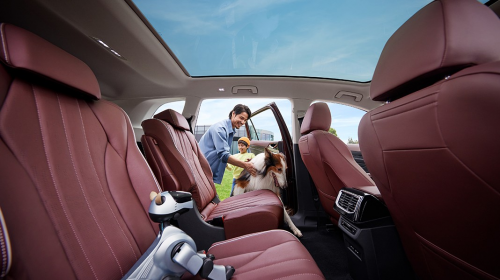 而車內(nèi)的座椅雖未加入花紋,但卻成功通過精巧的縫線打造出別樣的視覺效果,顯得精致又非同尋常。