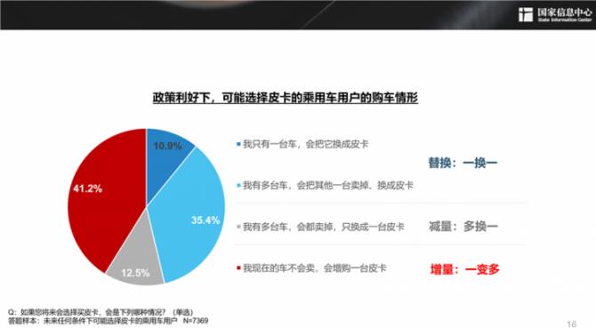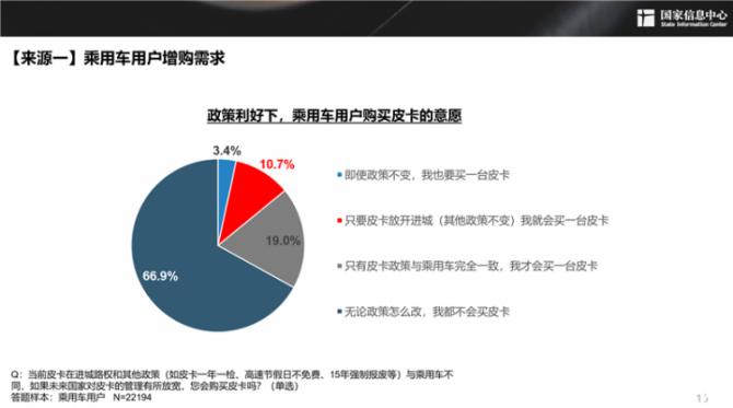 而在此前國家信息中心的部分調研數據也顯示:“只要皮卡放開進城(其他政策不變),我就會買一臺皮卡”的選擇比例達10.7%;在有意向購買皮卡的乘用車用戶中,選擇“我現(xiàn)在的車不會賣,會增購一臺皮卡”的比例為41.2%。
