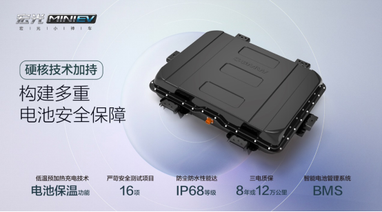 上汽通用五菱在造車做工上也保持了扎實的工藝水準(zhǔn),對一臺三萬出頭的代步車來說它的設(shè)計足夠扎實可靠,安全性能也相當(dāng)出色。擁有整車智能車速控制,可以遠(yuǎn)程設(shè)置三檔最高車速,避免超速同時也提升安全性能。另外它的電池上也加入了多重安全保障,在低溫充電是對電池進行預(yù)先啟動升溫,并且在充電時持續(xù)保溫,進一步提升了車輛的整體性能。