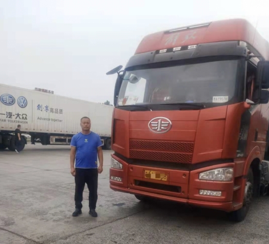 張師傅平常跑長春至重慶的百貨專線運輸,這款J6P 6X4牽引車拖掛的是17.5平米的平板車,主要運輸一些汽車配件、米面糧油等物品。因為運輸的貨物較重,車輛要滿足車貨總重49噸的常規(guī)要求,所以對卡車的動力性能要求較高。